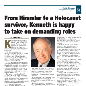 From Himmler to a Holocaust survivor, Kenneth is happy to take on demanding roles